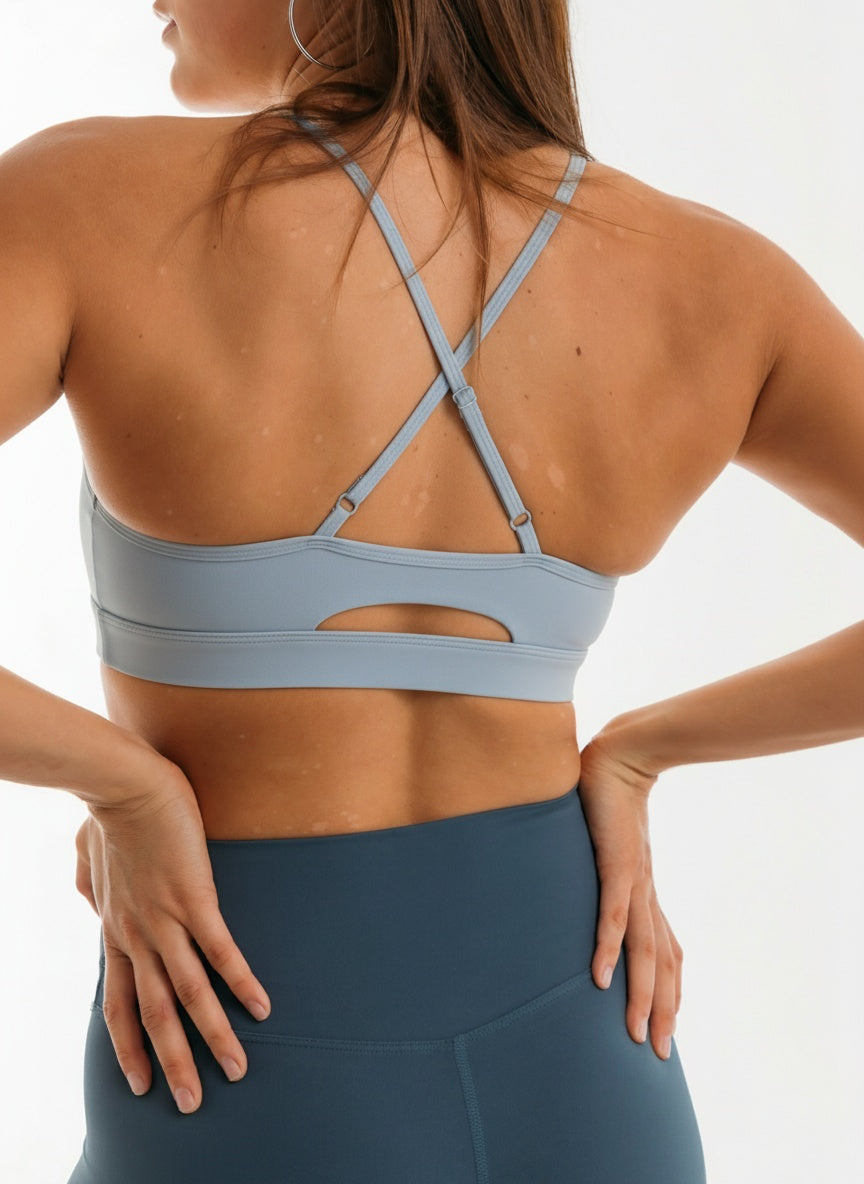 El Cross Cian nace como evolución del top Core, manteniendo su firmeza y comodidad, pero introduciendo un diseño de espalda cruzada ajustable que aporta aún más libertad de movimiento y estilo.